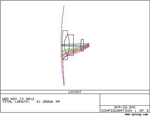 OK,下面我們介紹一下魚眼鏡頭的設計方案,魚眼鏡頭由三片光學鏡片組成,全都是常規的光學玻璃牌號,易采購,成本很低。